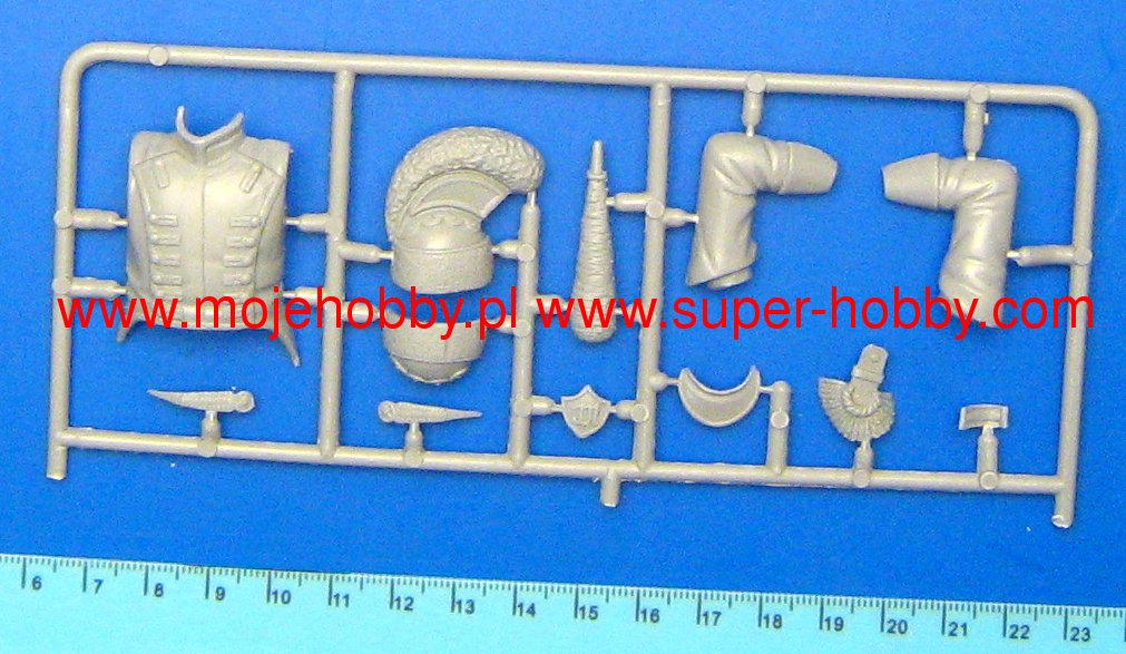 Набор содержит фигуру драгуна и лошадь. Набор поставляется несобранным и неокрашенным.