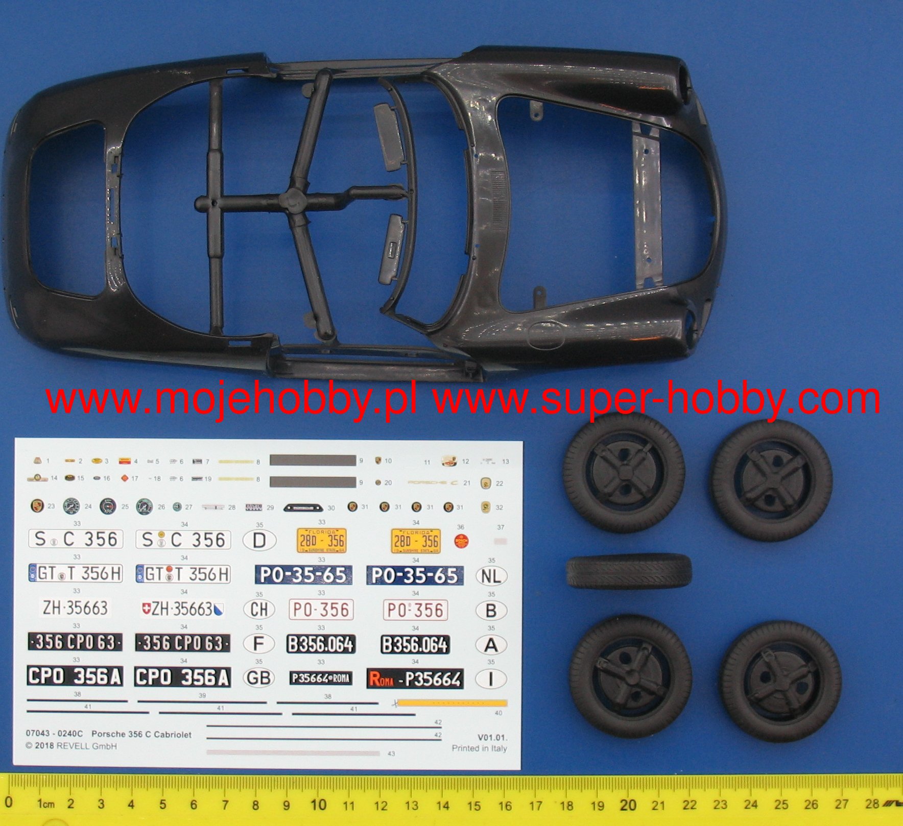 Сборная модель автомобиля Porsche 356 Cabriolet в масштабе 1:16. Набор состоит из 174 пластиковых элементов, требующих сборки и дополнительной окраски (по желанию). Длина модели в собраном виде: 252 мм. Элементы кузова окрашены в базовые цвета. Стекла салона, фар выполнены отдельными деталями из прозрачного пластика. Множесство элементов с блестящим металлическим напылением для имитации хромированных деталей (ручки, эмблемы, элементы бампера и пр.) Уровень сложности 4 (из 5). Рекомендованый возраст для сборки 14+. Внимание! Клей, краски и инструмент в комплект не входят.