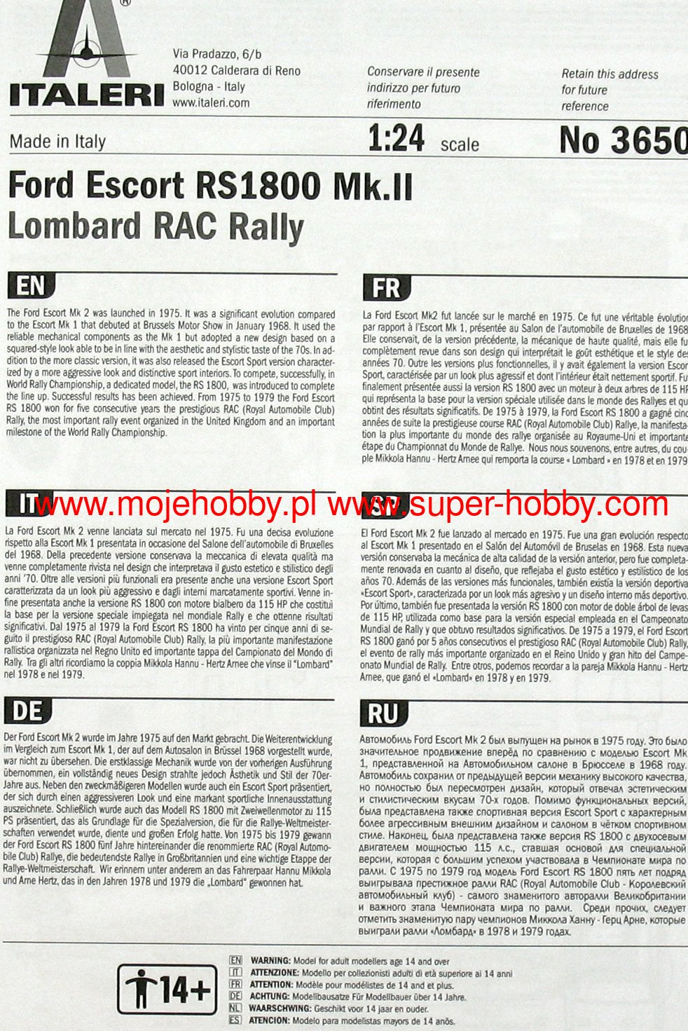 FORD ESCORT RS 1800 MK.II LOMBARD RAC RALLY italeri 1/24