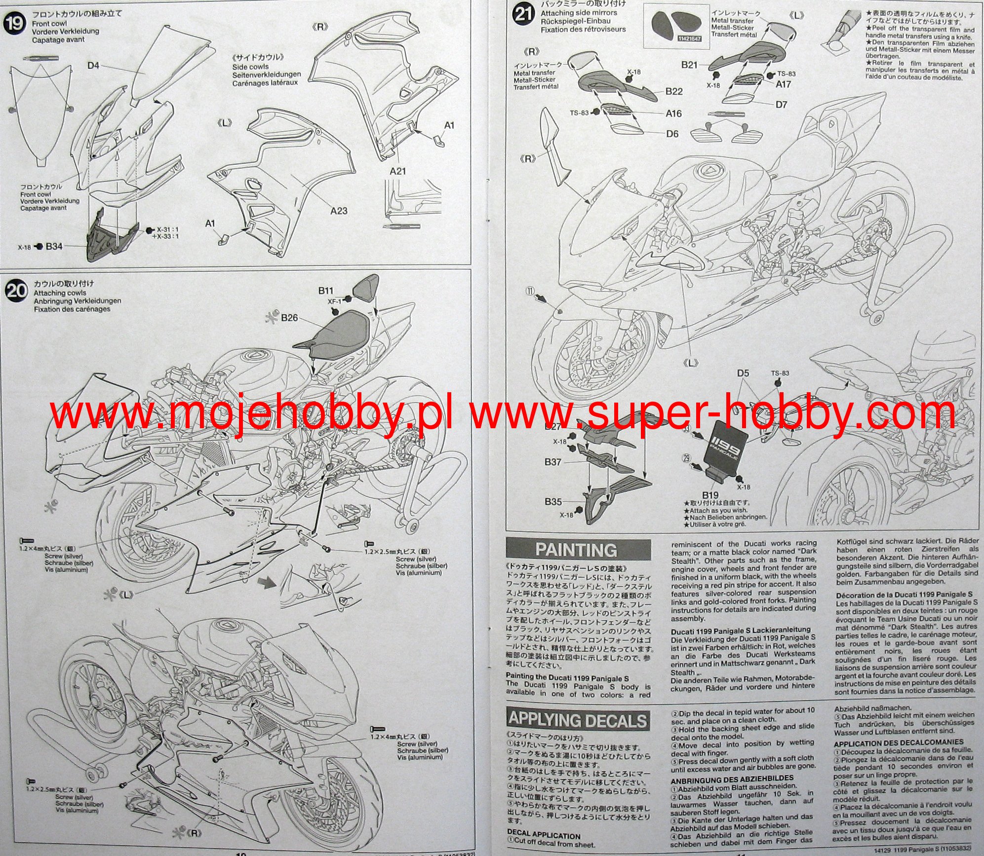 ОПИСАНИЕ ТОВАРА Набор пластиковых элементов для сборки модели мотоцикла Ducati 1199 Panigale S. Особенности модели: Высокодетализированная модель со множеством конструктивных подробностей. Детально проработанная сборная объёмная несущая рама, крылья, сиденье. Высокодетализированный 2-цилиндровый двигатель, съемные обтекатели для обзора двигателя. Детализированная подвеска, детально проработанная тормозная система, действующий задний амортизатор. Детально проработанный руль с рычагами управления, поворачивающаяся передняя вилка. Покрышки из синтетической резины. Виниловая трубка для приводов дроссельных заслонок, тормозов и сцепления. Детали из прозрачного пластика для стёкол фар, габаритных огней. Спортивная подставка. Металлические самоклеящиеся элементы зеркал заднего вида. Декаль для панели приборов, эмблем. Сборка элементов осуществляется при помощи специального клея. Внимание! Клей и краски в комплект не входят.