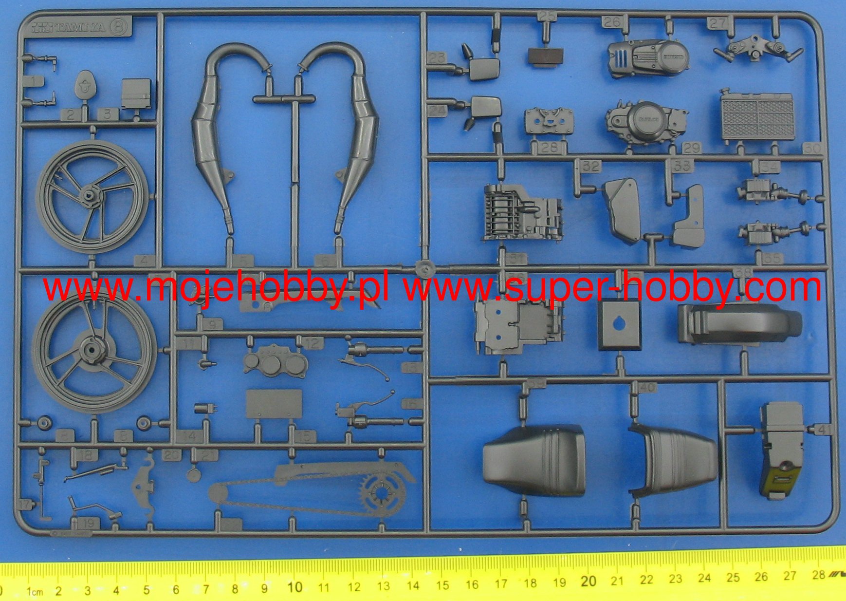 ОПИСАНИЕ ТОВАРА Набор пластиковых элементов для сборки модели мотоцикла SUZUKI RG250 w/full options kit в масштабе 1:12 Особенности модели: Детализированная модель со множеством конструктивных подробностей. Покрышки из синтетической резины с проработанным рисунком протектора. Детали с металлическим напылением (элементы защитных дуг, выхлопной системы, глушителя, задних амортизаторов, крышек двигателя, отражателя фары и пр.) Детали из прозрачного пластика для лобового стекла и фары. Сборка элементов осуществляется при помощи специального клея. Внимание! Клей и краски в комплект не входят.