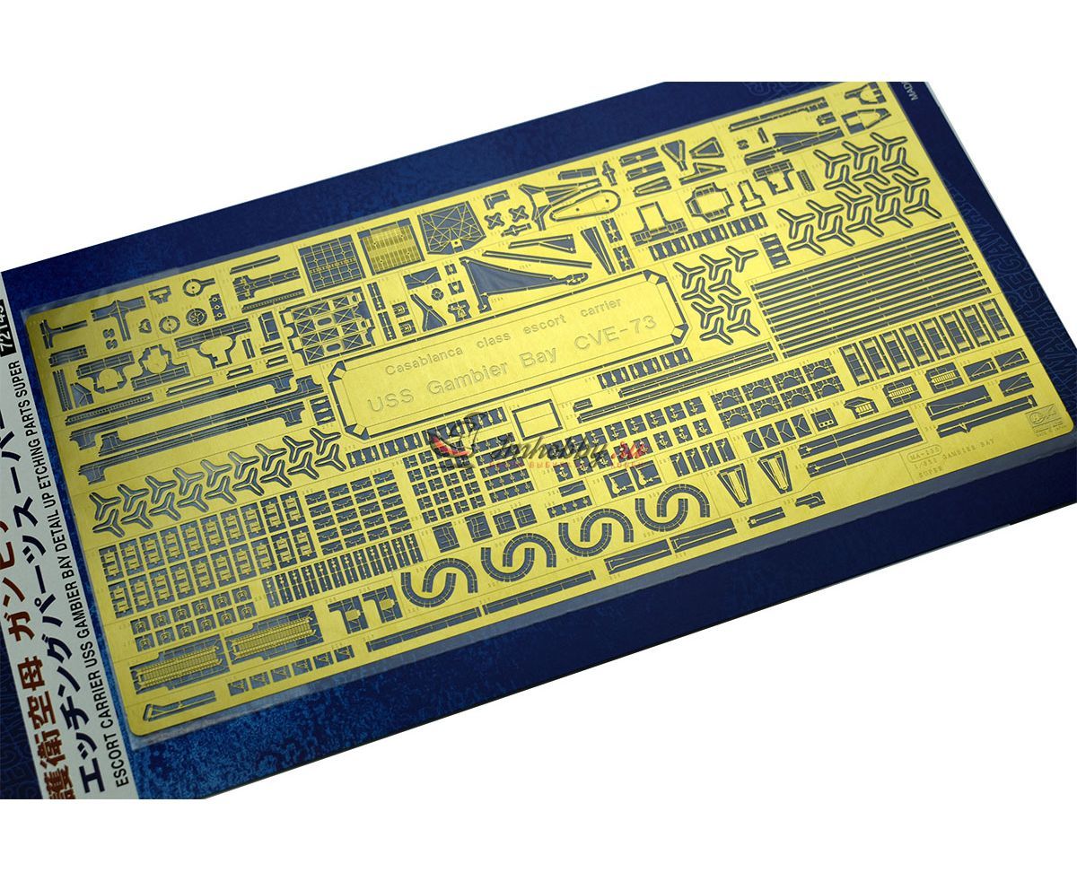 Фототравление для U.S. Navy Escort Carrier USS Gambier Bay (CVE-73) Super Set в 350 масштабе от Hasegawa. Набор фототравления Super PE Detail Set for USS Gambier Bay включает трапы, шлюп-балки, ограждения и прочие фототравленые детали. В комплекте одна пластина.Код производителя - QG45. Может использоваться совместно с набором:Деревянная палуба для U.S. Navy Escort Carrier USS Gambier Bay (CVE-73) (HS40027) масштаб 1:350 Hasegawa HS72146Фототравление для U.S. Navy Escort Carrier USS Gambier Bay (CVE-73) Basic Set (HS40027) масштаб 1:350 Hasegawa HS72144 Подходит для моделейU.S. Navy Escort Carrier USS Gambier Bay (CVE-73) масштаб 1:350 Hasegawa HS40027