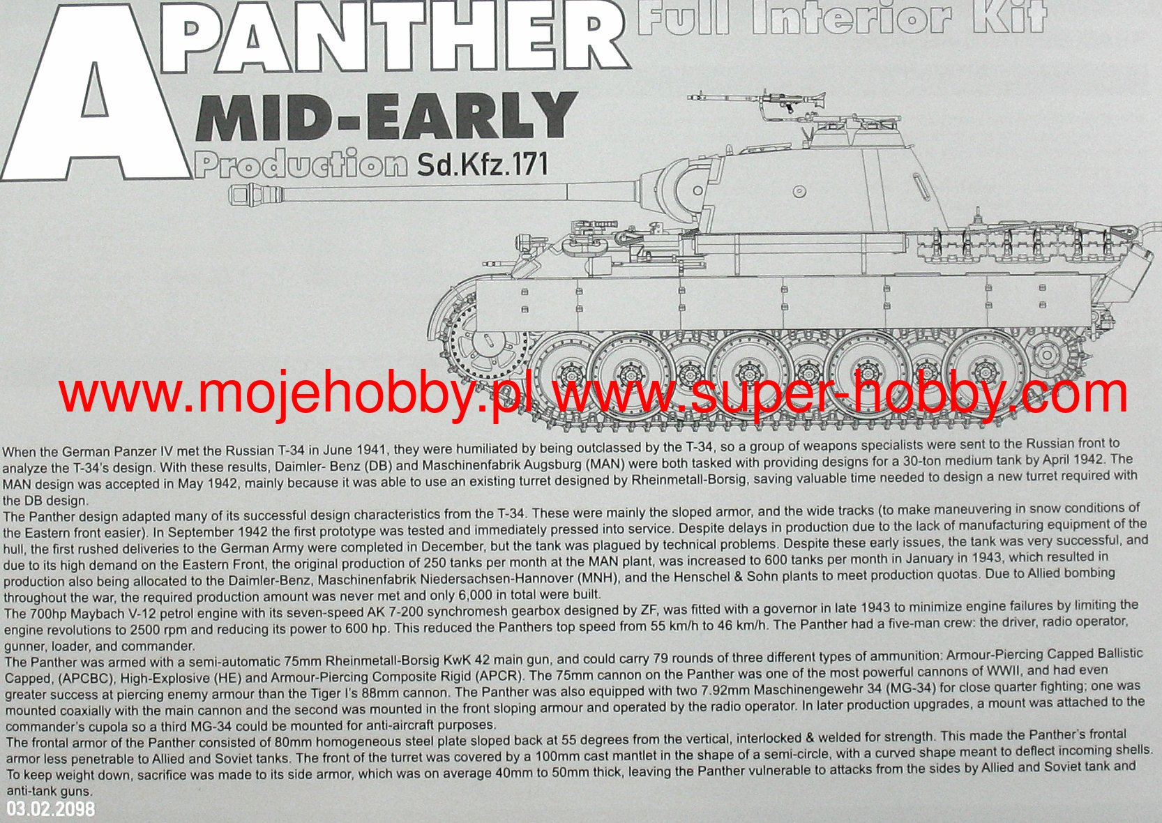 Купить T НЕМЕЦИЙ СРЕДНИЙ ТАНК WWII GERMAN TANK SD.KFZ.171 PANTHER A MID-EARLY (1/35)