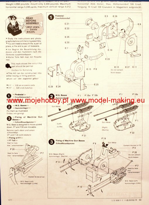 ОПИСАНИЕ ТОВАРА Сборная модель из пластика. Немецкое зенитное орудие состоящее из четырёх синхронизированных стволов зенитных орудий 2см Flak 38с прицепом для транспортировки. Набор состоит из отдельных пластиковых элементов для сборки. Элементы собираются при помощи специального клея. Внимание! Клей и краска в комплект не входит.