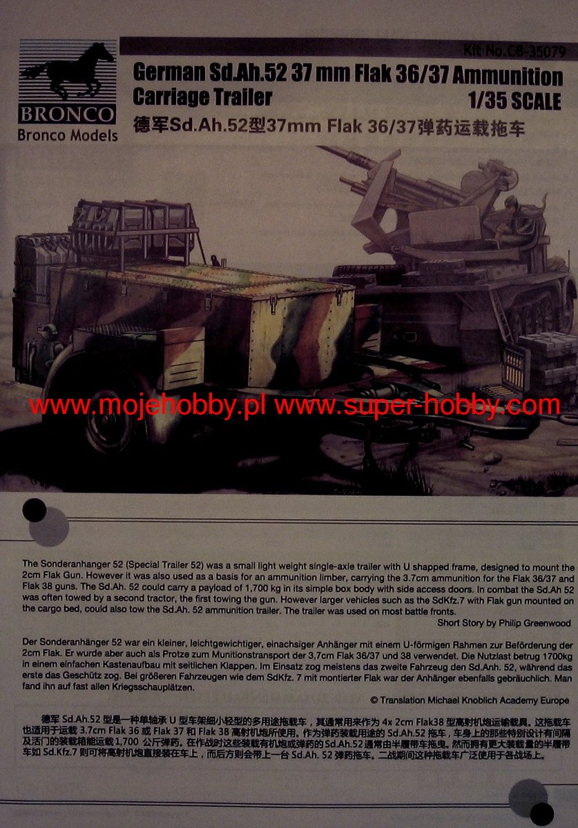 СБОРНАЯ МОДЕЛЬ GERMAN SD.AH.52 37MM FLAK 36/37 AMMUNITION CARRIAGE TRAILER