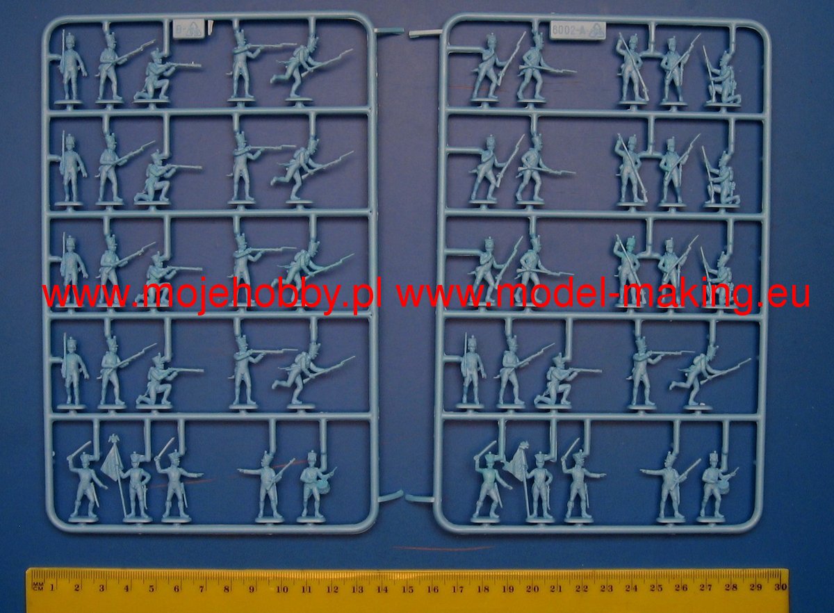 The line infantry was the backbone of Napoleon's Grande Armée. The “shako” headgear adopted in 1806, replacing bicorn hats, and the Charleville 1777 musket, are the most characteristic elements of French line infantry. The equipment was completed by the briquet, a sort of infantry shortsword. The kit also includes the regiment's drummer and the “eagle-bearer” carrying the regiment's insignia.