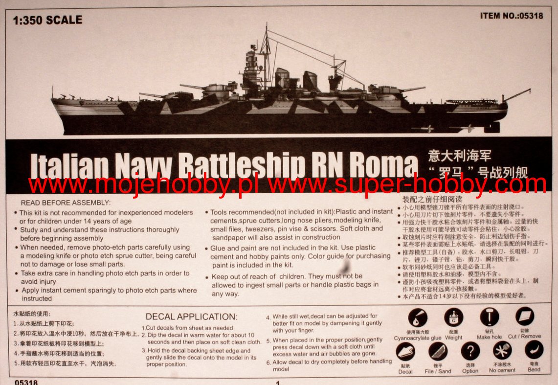 Купить TRUMPETER ИТАЛЬЯНСКИЙ ЛИНЕЙНЫЙ КОРАБЛЬ "ROMA" МАСШТАБ (1/350)