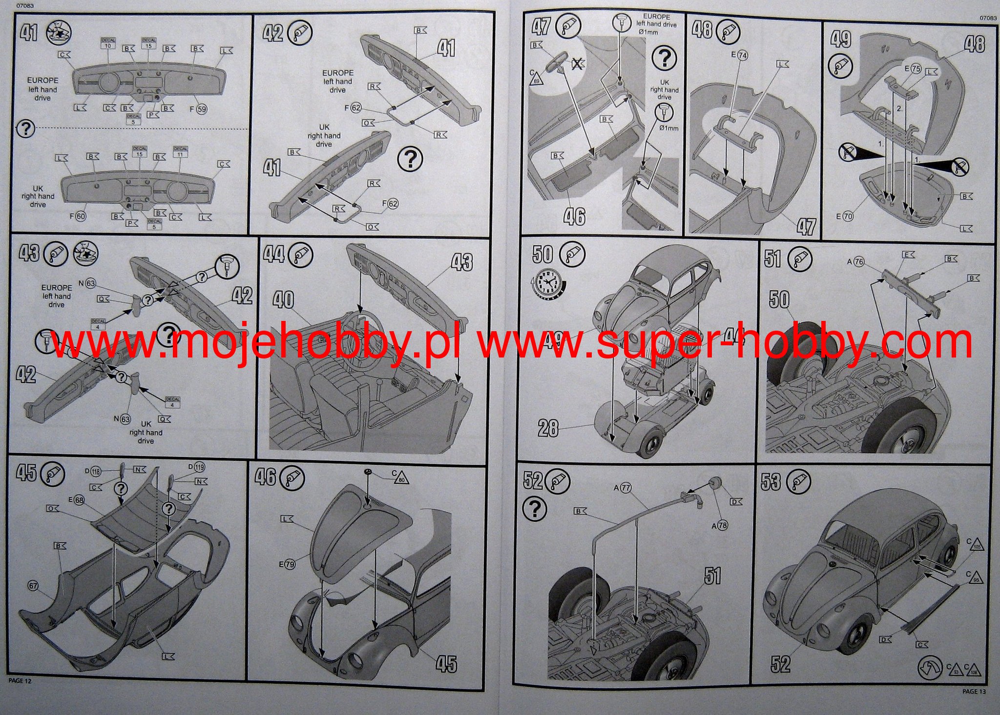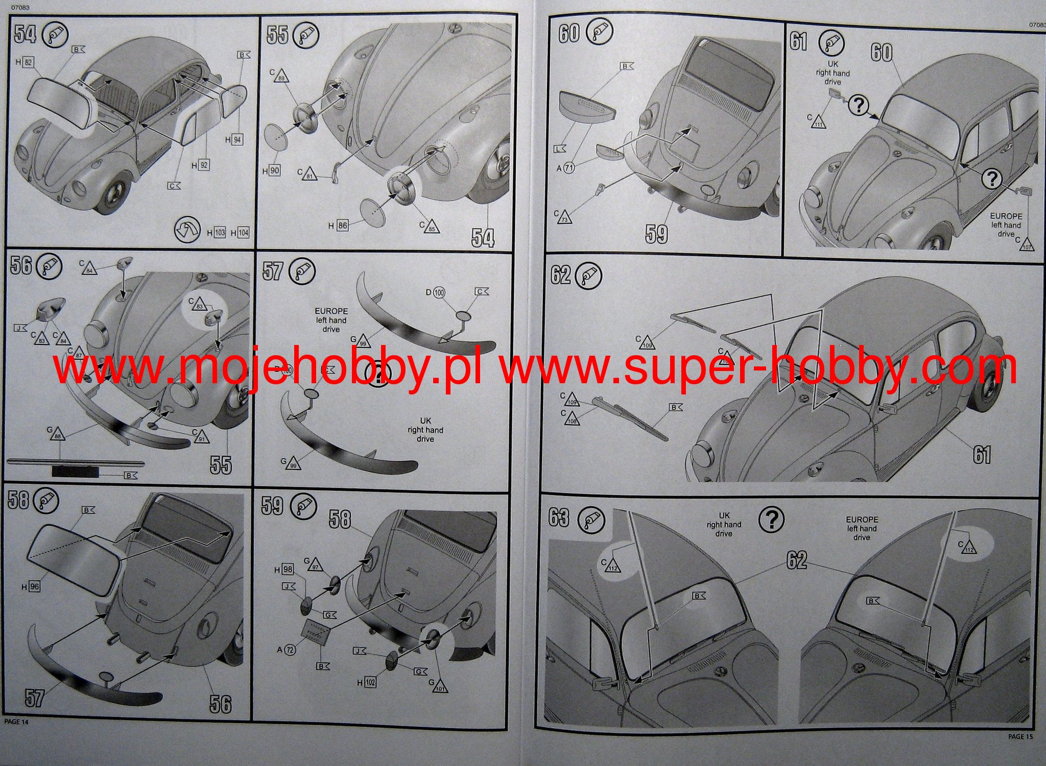 Сборная модель лимузина Volkswagen Жук 1500 в масштабе 1:24 Детали изготоволены из пластика и требуют окраски. Модель детально и достоверно проработана. Уровень сложности 3 (из 5), рекомендуемый возраст для сборки 10+ Внимание! Клей и краска в комплект не входят.