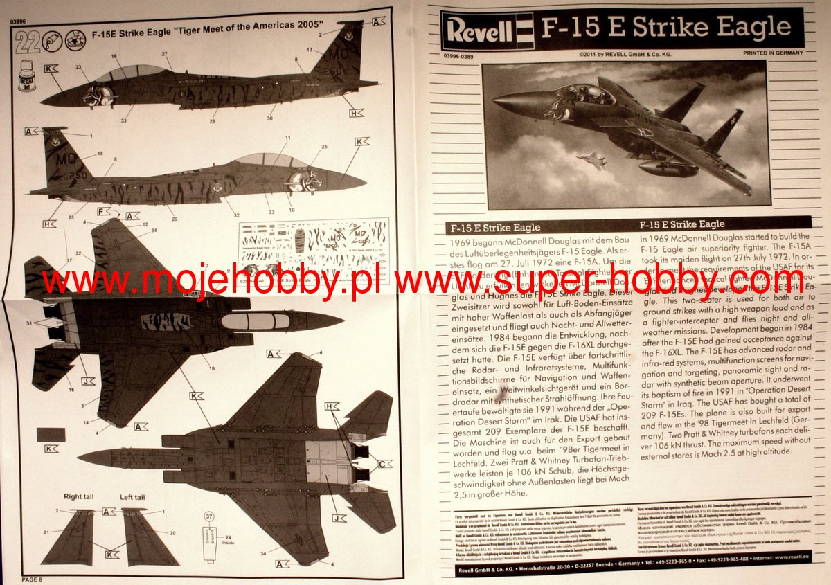САМОЛЕТ МАКДОННЕЛЛ-ДУГЛАС F-15E «СТРАЙК ИГЛ» (ПОДАРОЧНЫЙ НАБОР) revell 1/144