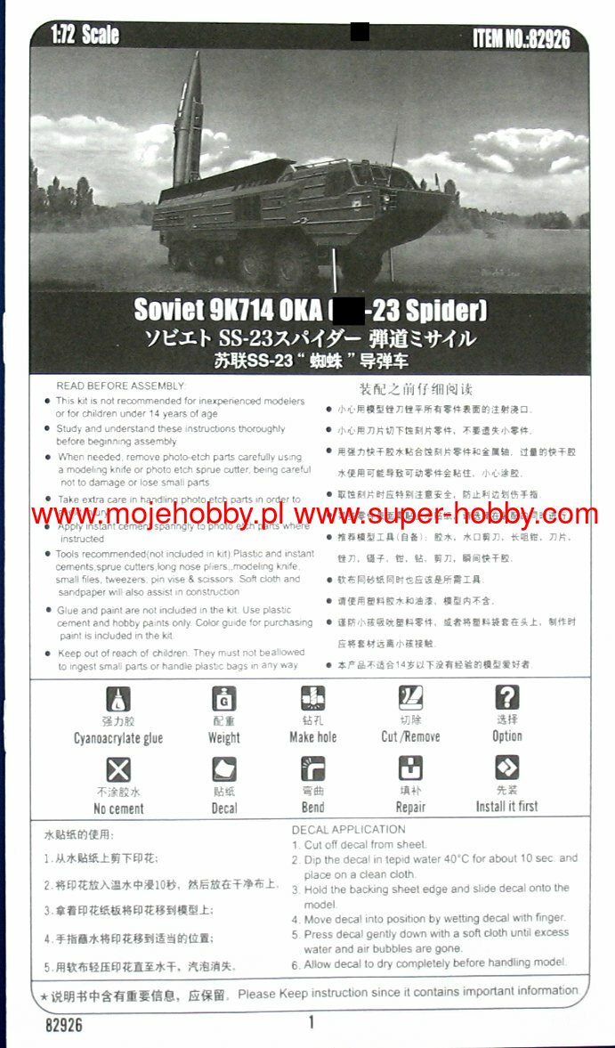 HOBBY BOSS РАКЕТНЫЙ КОМПЛЕКС 9K714 OKA (SS-23 SPIDER) (1/72) продается в 4 магазинах. Выберите подходящий Вам интернет-магазин и перейдите по ссылке «В магазин».