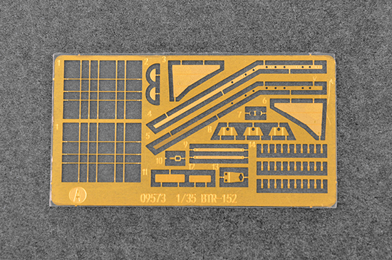 Описание БТР-152В (1955) вариант на базе узлов и агрегатов опытного автомобиля З&С-128 и первых прототипов грузового З&Л-157, с автоподкачкой шин. Серия в 19551959 гг. на З&С, 2904 машины. Борт корпуса 9-11 мм. Боевая масса 8,95 т. Экипаж 2+17 чел. БТР-152В1 (1957) снабжён прибором ночного видения ТВН-2 и усовершенствованной системой регулировки давления в шинах (подвод воздуха осуществляется через ступицу колеса) Длина: 194,3 мм Ширина: 66,3 мм Всего деталей более 350 Фототравление Всего литников 10, шины