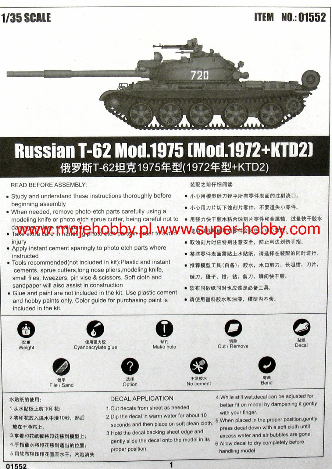 Купить 1/35 РОССИЙСКИЙ ТАНК ТИП 62 MOD.1975 (MOD.1972+KTD2) (1/35)