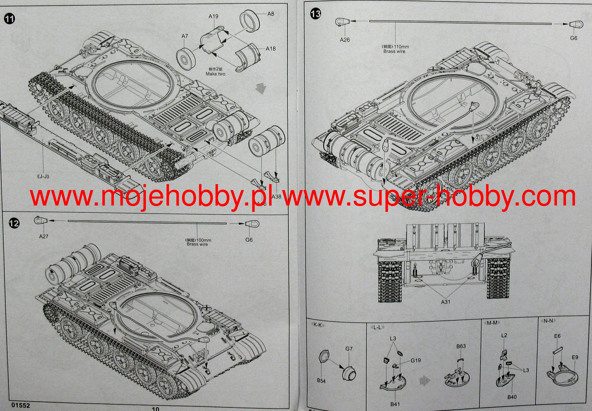 Дополнительная информация Tип 62 изначально разрабатывался для поддержки Tип -55, будучи в целом Tип -55 с более мощной, 115 мм пушкой 2А20. Основным отличием между двумя машинами был облегченный корпус Tип -62 и башня новой конструкции. Снаряды нового орудия были способны пробивать 300 мм брони на дистанции 1000 метров, этого было достаточно для поражения американского M48 и поздних версий британского "центуриона". Изначально, роль Т-62 сводилась к поражению целей на дальней дистанции, тогда как остальные задачи выполнял Tип -55. Но позднее, Tип -62 выполнял все функции, став первой в мире воплощенной концепцией Основного боевого танка. Не смотря на появление в 1960 году, и лучшие характеристики приемника Tип -72, Tип -62 используется и по сей день во многих армиях мира. Самым значительным эксплуататором вне Варшавского пакта являются Арабские страны, такие как Египет, Ирак, Сирия. Израиль получил большое количество Tип -62 в столкновениях с соседям, позже модернизировав значительную часть машин до своих стандартов. Длина: 286мм Ширина: 95мм Количество деталей: более 510