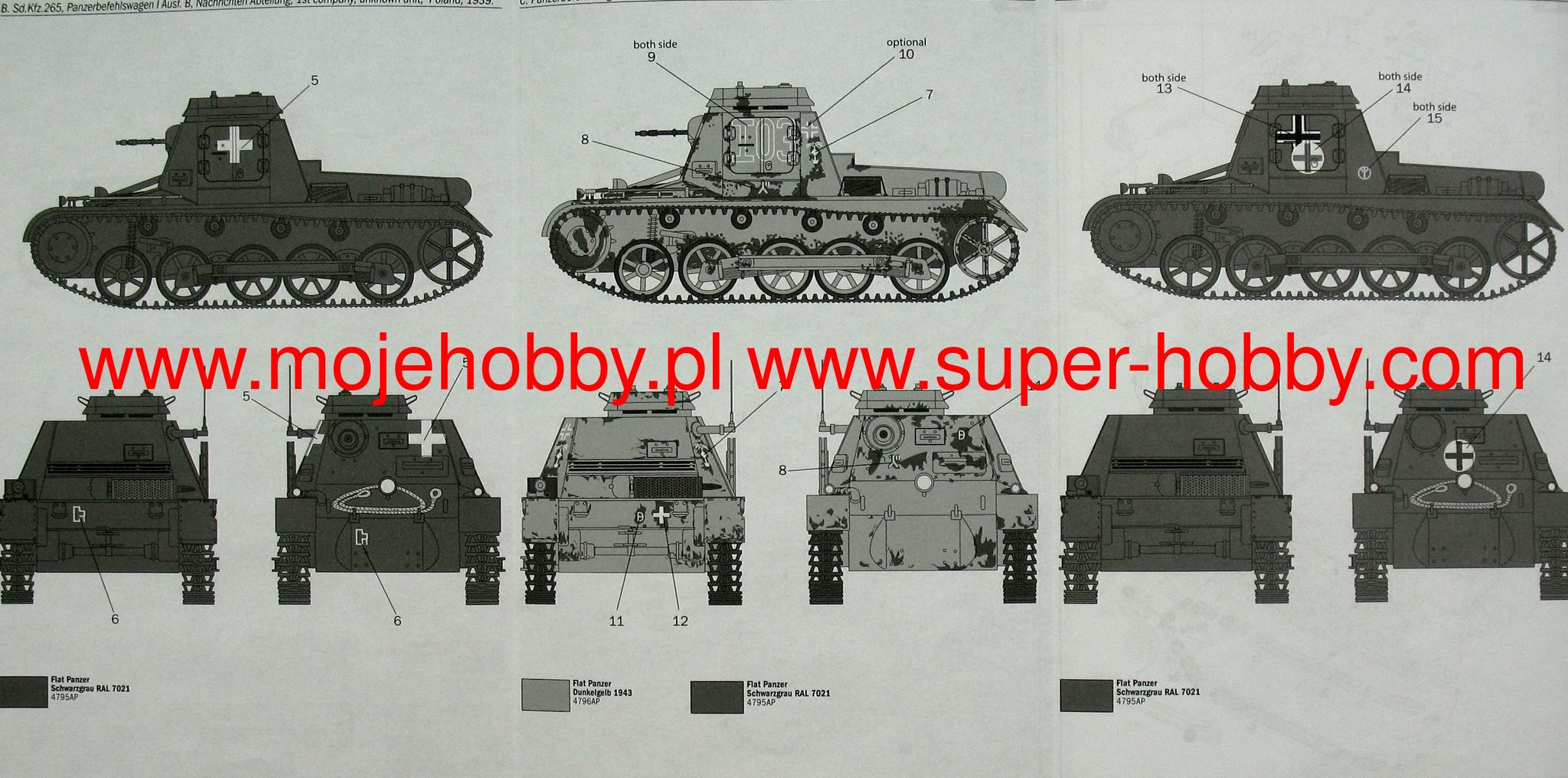 The Sd.Kfz 265 Kleine Panzerbefehlswagen armored command vehicle was born to meet the need of the Wehrmacth Panzer Division Commanders to follow, as close as possible, the tanks and better coordinate them on the battlefield. This armored command vehicle was designed on the Panzer I Ausf. B light tank chassis. To increase the space for the unit commander and his staff, the traditional rotating turret with the main armament was removed and a tall fixed superstructure was installed. The commander’s room was able to host the battle maps, the transmission and the communication systems. An additional radio antenna could be used, on the hull, to increase the range of radio communication. Produced from the second half of ‘30s the “Panzerbefehlswagen” has been used in combat operations for the first time during Spanish Civil War. Considered already outdated at beginning of the World War II, it was assigned to signal corps and some of them were converted in abulances.