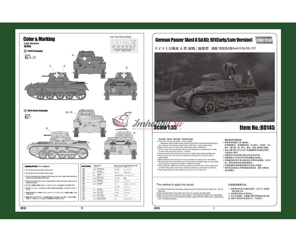 Купить GERMAN PANZER 1 AUSF A SD.KFZ.101 EARLY/LATE (1/35)