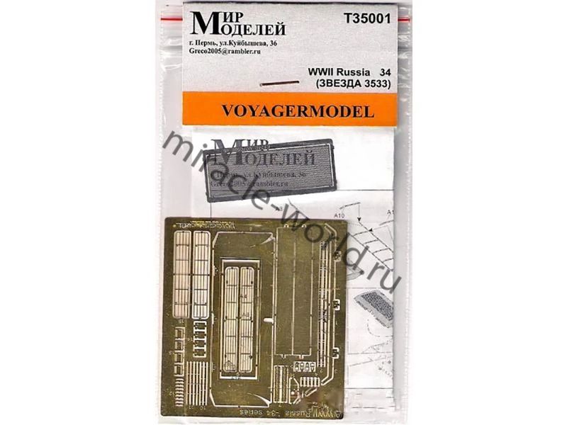 МИР МОДЕЛЕЙ T35001 PE: ТАНК 34 /НАДМОТОРНЫЕ СЕТКИ/ 1/35 (1/35) продается в 3 магазинах. Выберите подходящий Вам интернет-магазин и перейдите по ссылке «В магазин».