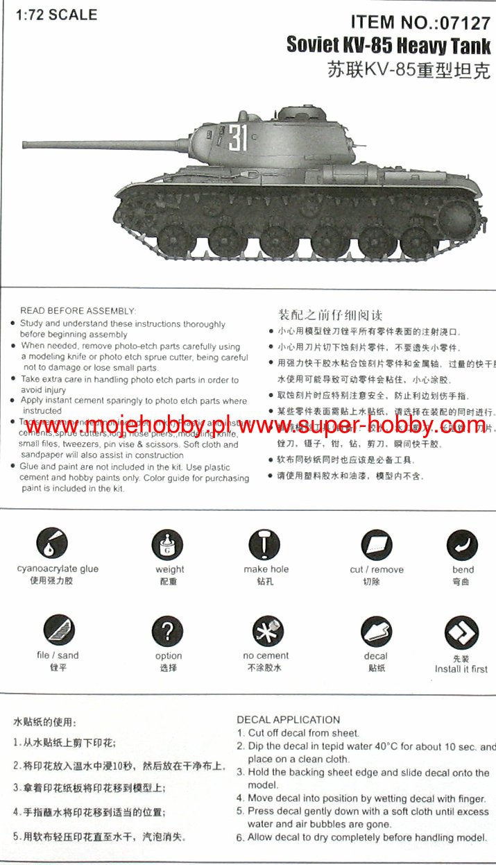 07127 ТЕХНИКА И ВООРУЖЕНИЕ SOVIET KV-85 HEAVY TANK (1/72) продается в 4 магазинах. Выберите подходящий Вам интернет-магазин и перейдите по ссылке «В магазин».