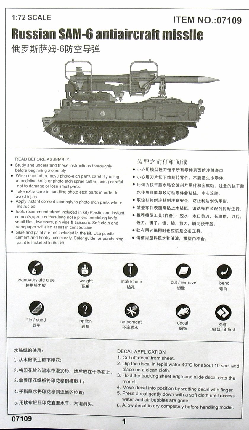 Купить 07109 ТЕХНИКА И ВООРУЖЕНИЕ ЗРК RUSSIAN SAM -6 ANTIAIRCRAFT MISSILE (1/72)