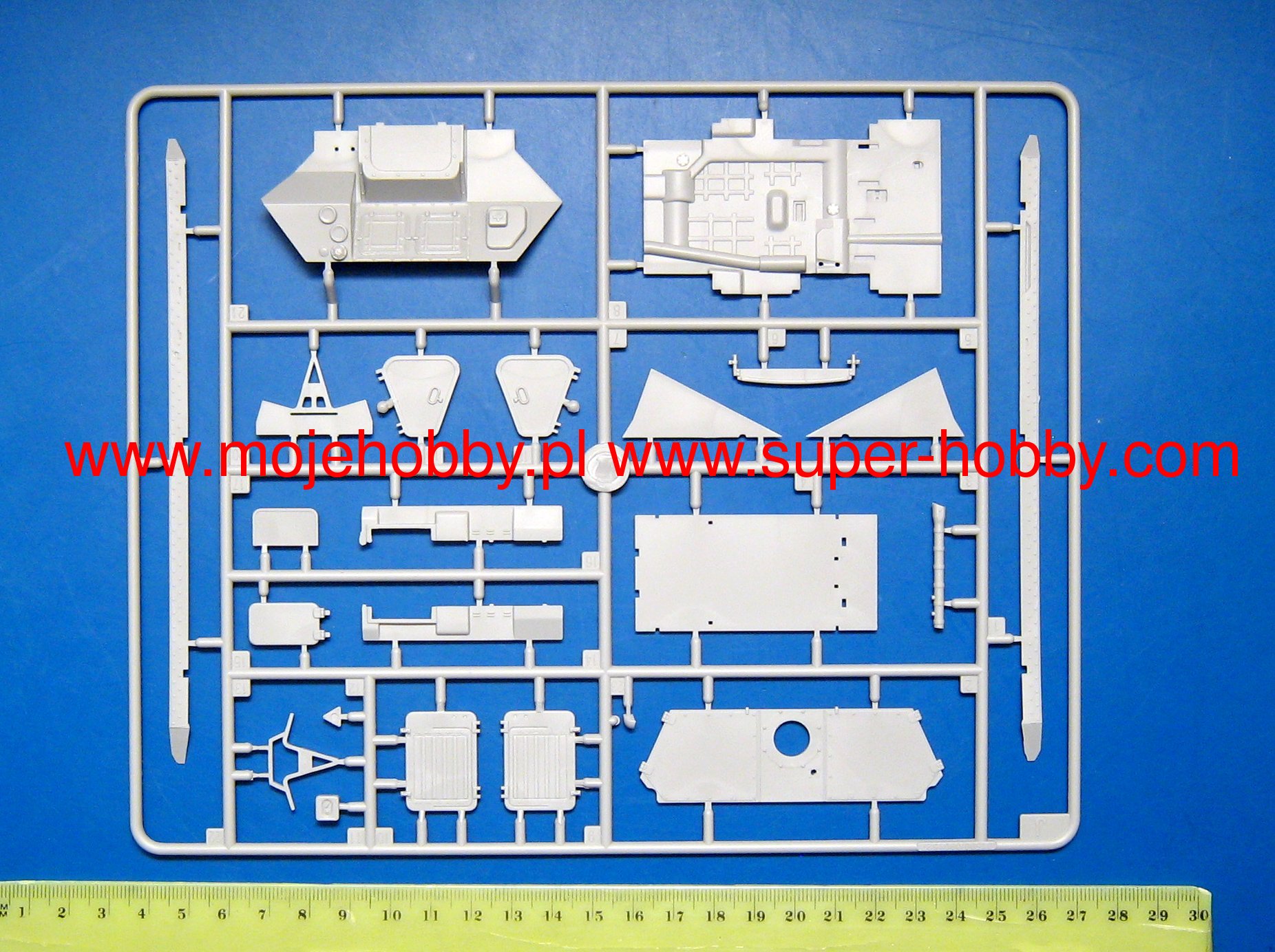 Описание БТР-70 советский бронетранспортёр боевая колёсная плавающая бронемашина для транспортировки личного состава мотострелковых подразделений и их огневой поддержки, в том числе и в условиях применения оружия массового поражения. Боевая машина БТР-70 представляет собой плавающую, с круговым бронированием, восьмиколёсную с независимой подвеской, полноприводную машину, способную следовать за танками, с ходу преодолевать окопы, траншеи и водные преграды. Вооружение состоит из пулемёта КПВТ калибра 14,5 мм и пулемёта ПКТ калибра 7,62 мм. Длина: 215,5 мм Ширина: 80,7 мм Всего деталей 470+ Фототравление Всего 20 литников, низ корпуса, верх корпуса и шины