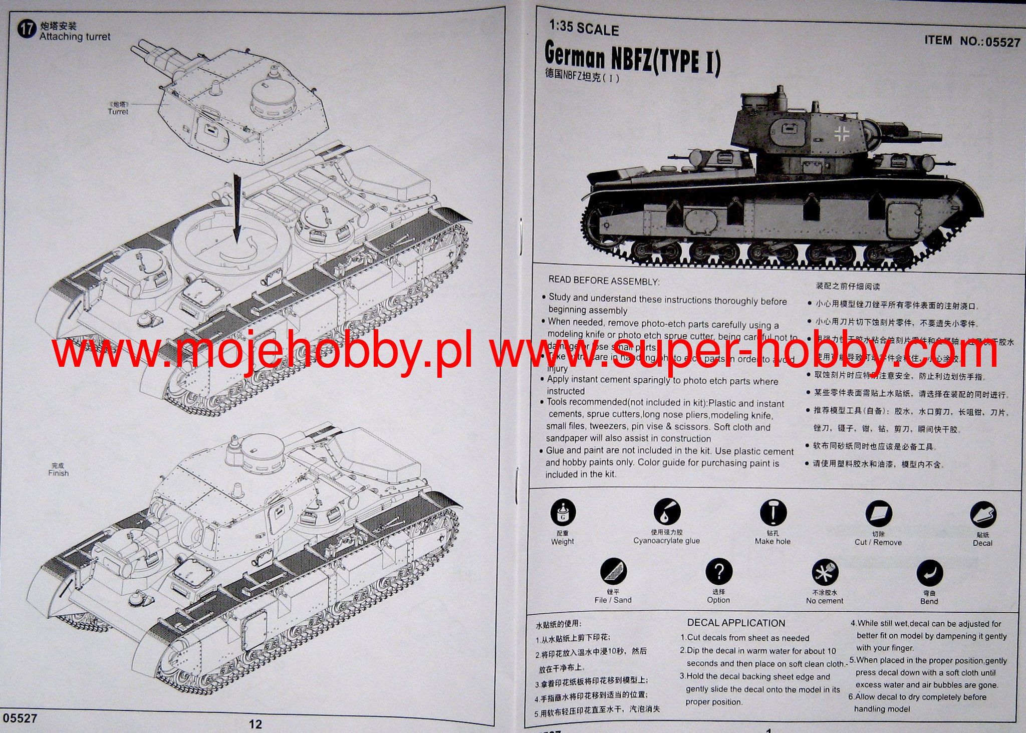 Модель для склеивания в масштабе 1/35 производства фирмы Trumpeter. Panzerkampfwagen Neubaufahrzeug (в переводе с немецкого, машина новой постройки), часто сокращаемый до Neubaufahrzeug или Nb.Fz. германский опытный тяжёлый танк 1930-х годов. В советской литературе иногда именуется как Рейнметалл. Серийно не производился и почти не использовался в боях, однако стал настоящим оружием германской пропаганды. (Trumpeter 05527)