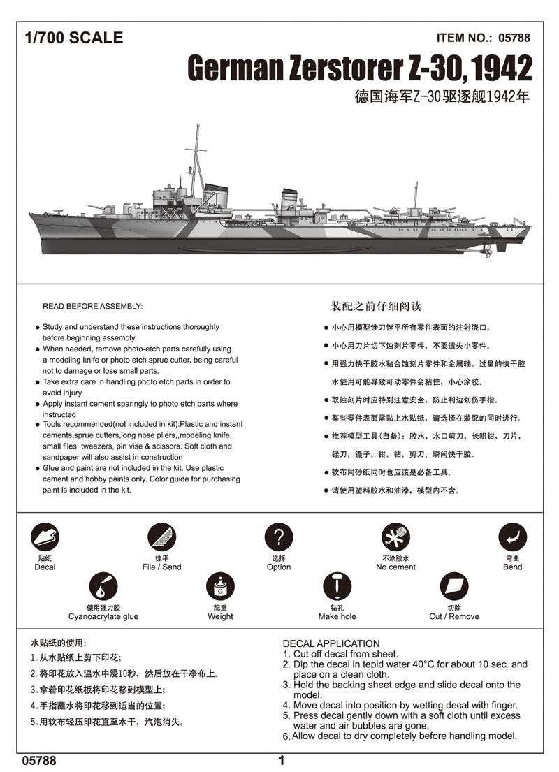 Купить ЭСМИНЕЦ ВМС ГЕРМАНИИ Z-30 1942 Г. GERMAN NAVY Z-30 DESTROYER 1942 (1/700)