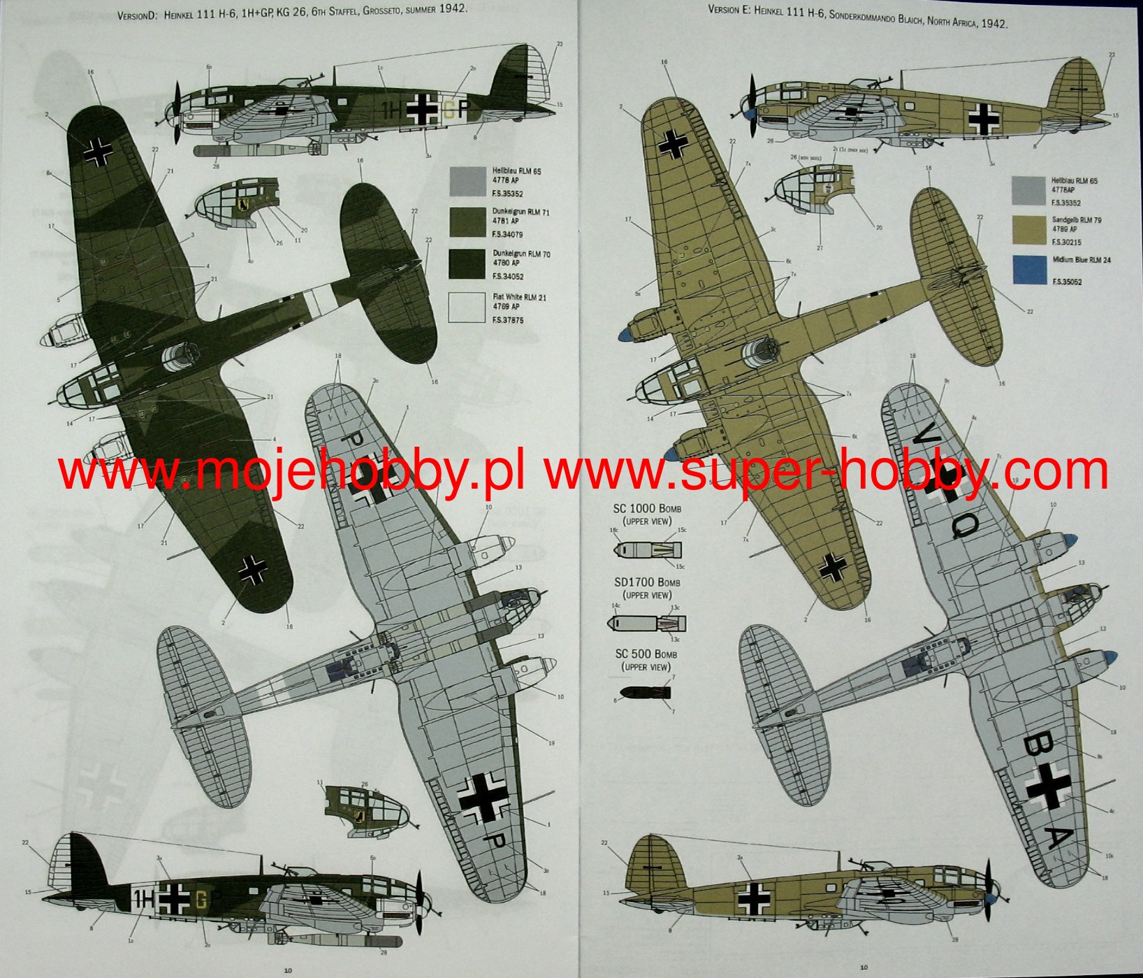 The medium bomber Heinkel He-111 formed the backbone of the Luftwaffe bomber squadrons during the early stages of the Second World War. It was characterized by the adoption of two engines, like many other aircraft with similar features of the time, but also by the introduction of innovative solutions such as the all-metal frames. Thanks to its two Jumo 211 engines, it was able to reach the maximum speed of 440 km / h and it could load up to 2,000 kg of bombs in the internal loading bay. Easy to identify due to the distinctive fully glazed nose, the wing and rudders profiles, the He-111 was widely used by Luftwaffe during the Battle of Britain in 1940. During the years it was constantly improved and upgraded but became obsolete during the latter part of the war.