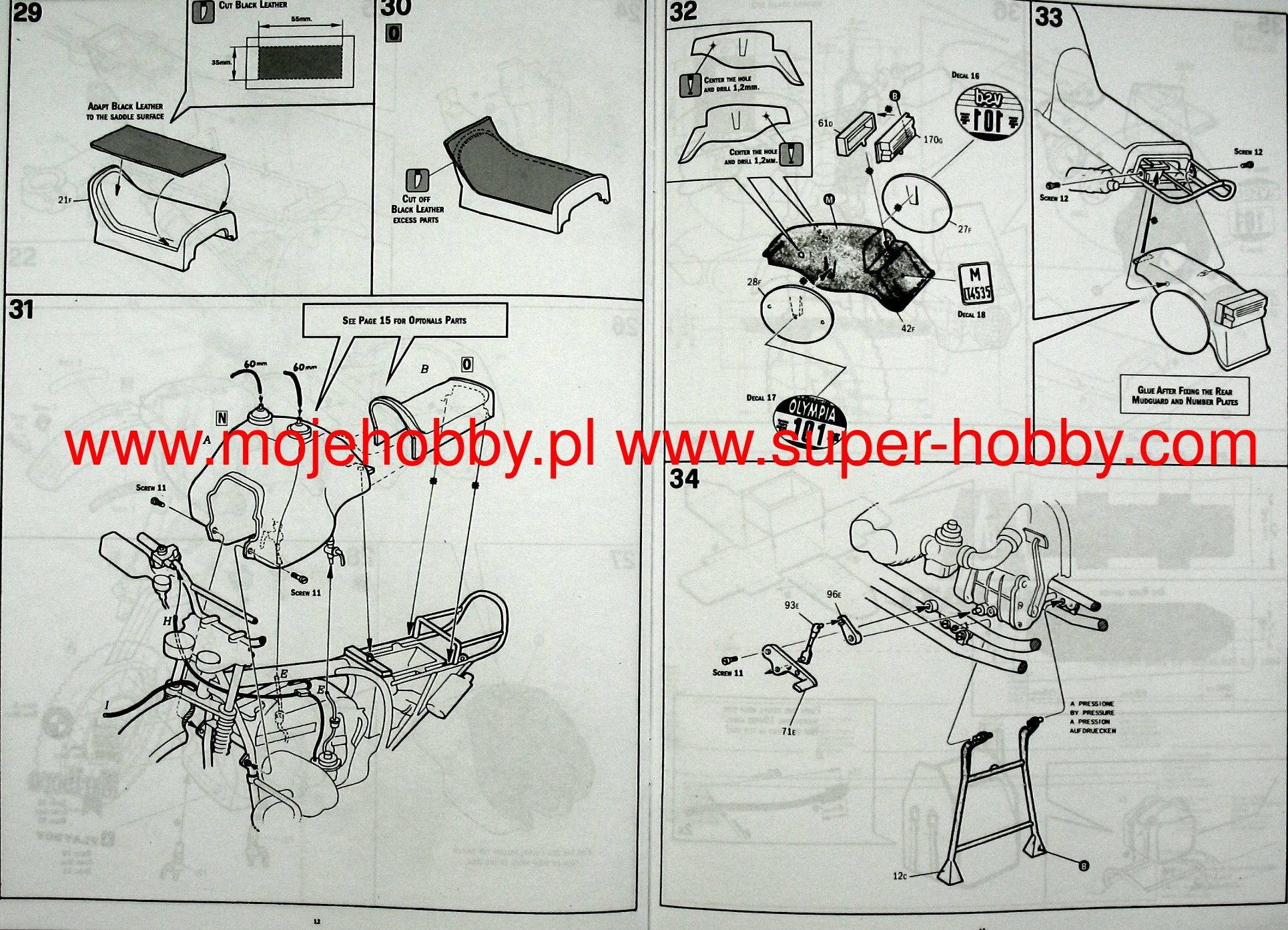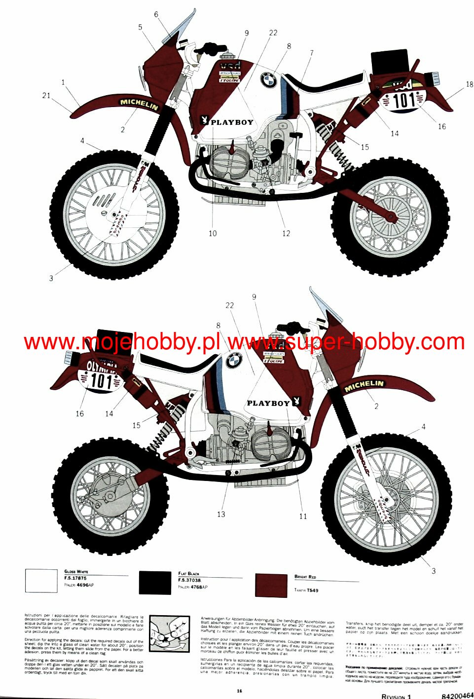 COLOR INSTRUCTION SHEET - RUBBER AND CHROMED PARTS - SCREWS, SPRINGS AND RUBBER TUBES