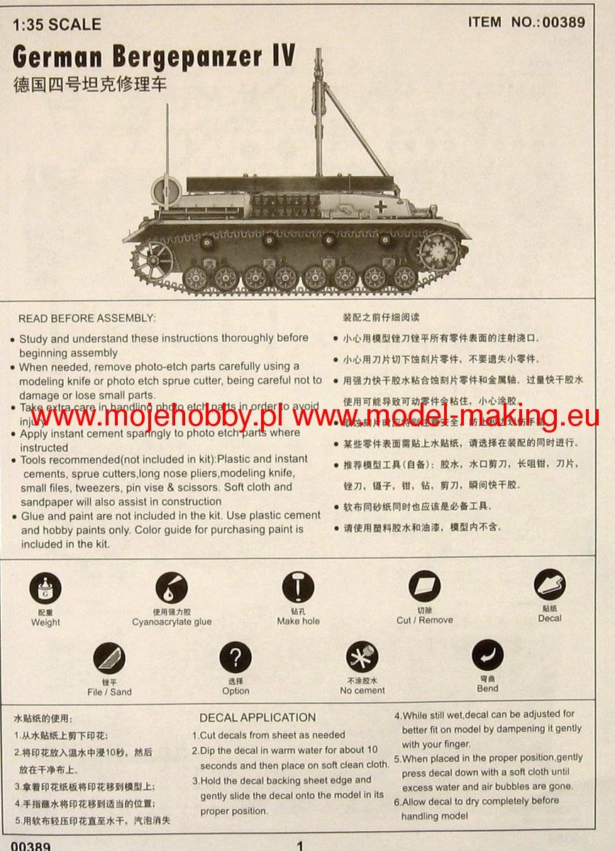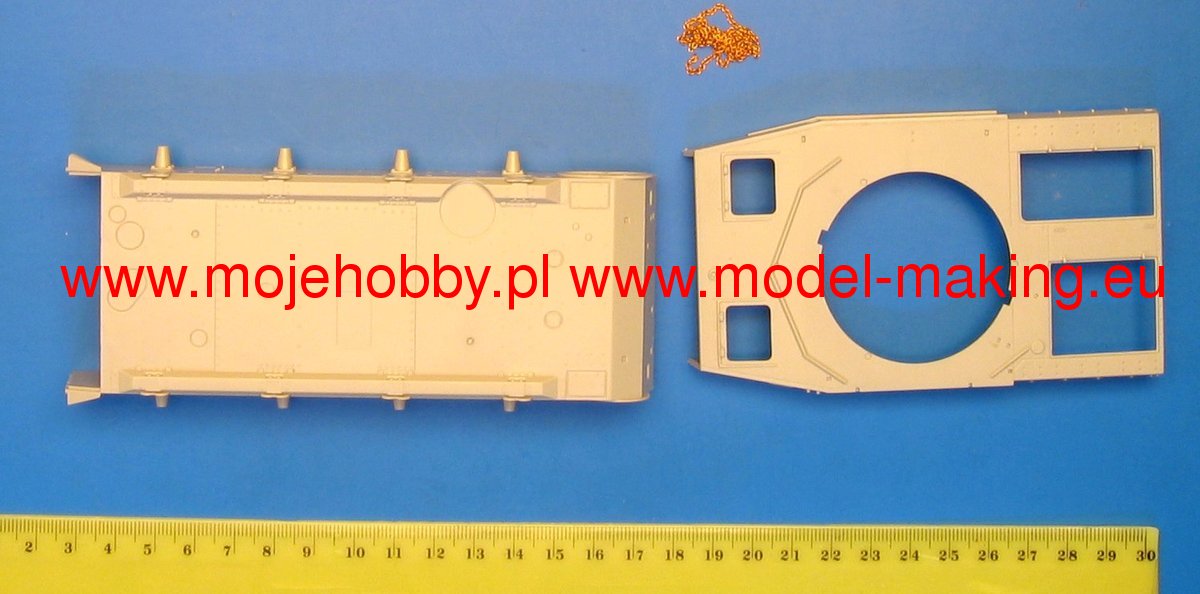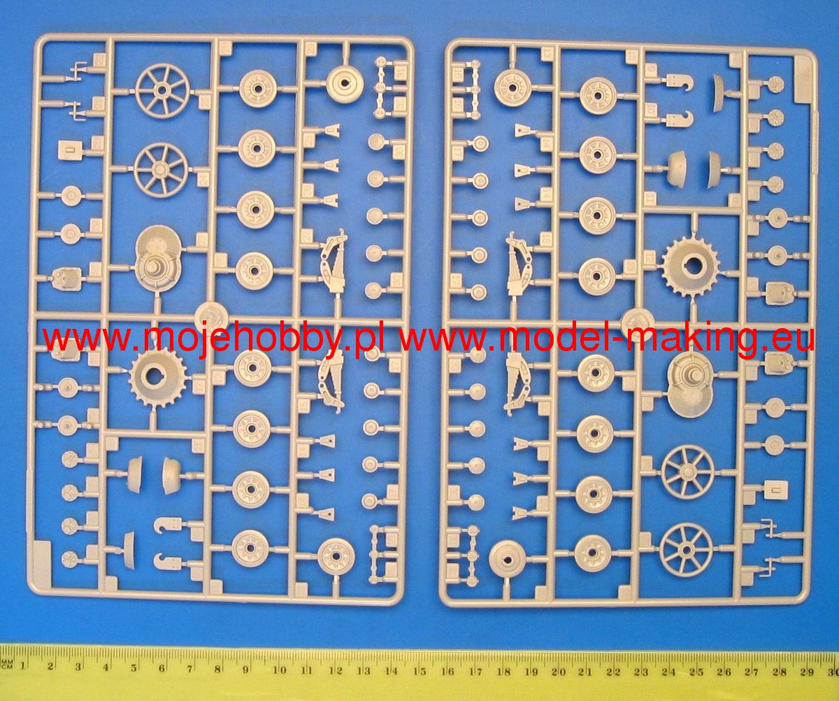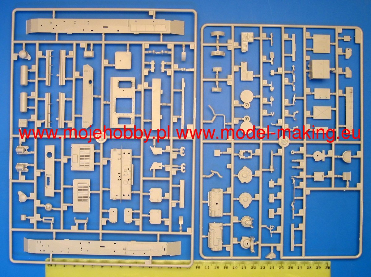 Описание Bergepanzer IV (Sd.Kfz. 164) немецкий танк технической поддержки и эвакуации времен Второй мировой войны. Производство этих машин продолжалось с октября 1944 по март 1945 года. За это время был создан всего 21 экземпляр этого эвакуационного танка. Машина должна была заменить в линейке машины Bergepanzer III, но фактически являлась лишь дополнением к ним. При производстве машин Bergepanzer IV для ремонта и капитального ремонта использовались только шасси и корпуса танков Panzer IV. Реконструкция заключалась в основном в снятии башни с основным вооружением, на которую крепился специальный деревянный ящик. Также был установлен кран грузоподъемностью до двух тонн. Однако модернизация не включала в себя установку отвала или лебедки, что существенно ограничивало автономность машин Bergepanzer IV. Длина: 168 мм Ширина: 82,9 мм Высота: 58,3 мм Всего деталей 823 шт. Металлическая цепочка Фототравление Наборные траки Всего литников 18, низ и верх корпуса