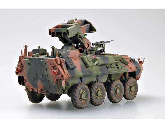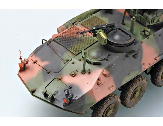 Дополнительная информация LAV-AT - это вездеходное, всепогодное транспортное средство с ночными возможностями. Он переносится по воздуху через C-130, C-141, C-5 и CH-53 E. Этот автомобиль обеспечивает подвижный, бронированный, точный и разрушительный огонь из оскверненных позиций против тяжелой бронированной цели и фиксированных укреплений. Благодаря своей мобильности он может идти в ногу с его применимой назначенной воинской частью для обеспечения высокомобильной, защищенной противопожарной огневой поддержки легкой пехоте и разведывательных сил и обеспечения возможности побеждать тяжелые бронированные объекты на больших дистанциях. Автомобиль можно использовать как в оборонительных, так и в оскорбительных ролях. Его основной оружейной станцией является башня Эмерсона. При боевом нагружении есть 2 готовых и 14 укрытых TAG II ATGM, а также 200 готовых раундов и 800 патронов с боеприпасами 7,62 мм. Есть 8 готовых раундов и 8 укрытых раундов дымовых гранат. Ракеты могут быть заряжены под броней. Автомобиль можно сделать полностью амфибий в течение 3 минут. Длина: 6.39m. Ширина: 2,5 м. Высота: 3,12 м (сворачивается до 2,69 м) Снаряженная масса: 11272 кг. Вес брутто (макс.): 12542 кг. Рекомендуемые краски от производителя: Metal Black Olive Drab Clear Red Dark Grey Wood Brown Clear Orange Clear Blue Mediun Grey Green