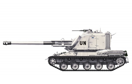 Модель французской 155-мм самоходной артиллерийской установки AUF1 TA в масштабе 1*35. Самоходная гаубица AUF1 TA представляет собой модернизированную версию AUF1, разработанную французской армейской промышленной группой (Groupement des Industries de l'Armée de Terre, GIAT) в 1970-х годах на базе модифицированного шасси AMX-30B. AUF1 TA базируется на более совершенном шасси AMX-30B2 и оснащена более высоким револьверным кольцом и двухконтактными гусеницами, которые имеют более длительный срок службы. Машина оснащена 155-мм гаубицей 39-го калибра с автоматическим заряжанием, а также установленным на крыше 12,7-мм зенитным пулеметом. В 2006 году Временные силы ООН в Ливане развернули AUF1 TA в составе миротворческих операций. Особенности модели: Длина 293 мм, ширина 90 мм. Точно воспроизведена внутренняя конструкция башни. Все люки могут быть собраны в закрытом или открытом положении. Ходовая часть реалистично воспроизводится с помощью подвижной торсионной подвески. Рабочие траки легко монтируются без использования клея. В комплект входят прецизионные фототравленые детали. Предусмотрены две схемы окраски. Внимание! Клей и краски в комплект не входят.