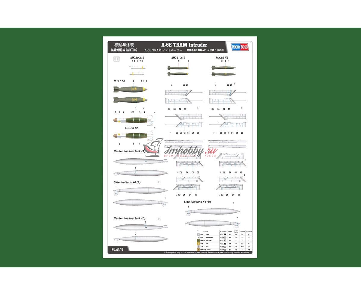 Сборная модель самолета A-6E TRAM Intruder в масштабе 1:48 от Hobby Boss. Характеристики модели: Длина - 348 ммРазмах крыльев - 336,5 ммКол-во деталей - 520+ штМасштаб - 1:48Декали в комплекте.Шины - пластик.Фототравление в комплекте. Внимание! Краски и клей в комплект не входят.
