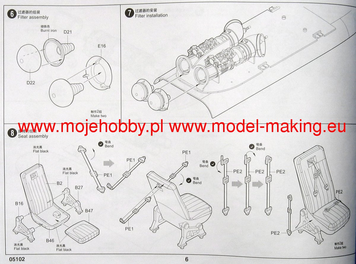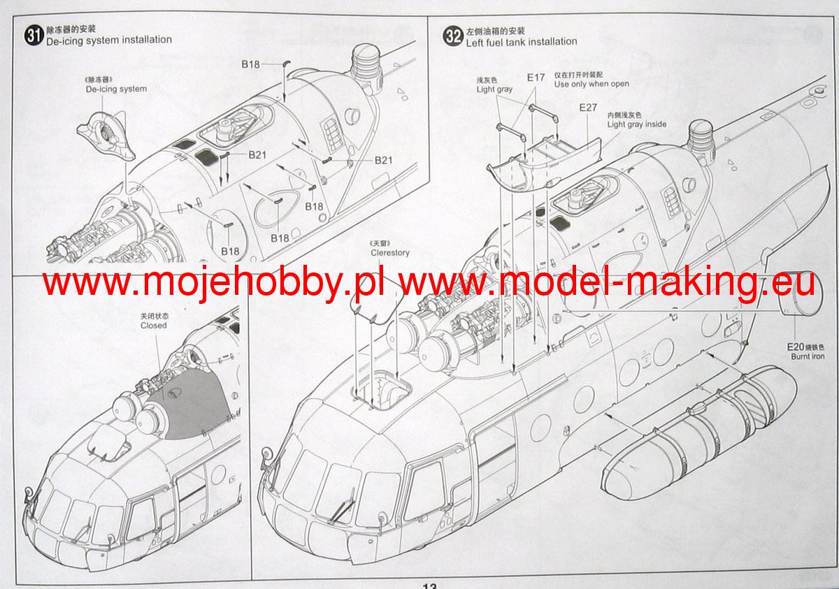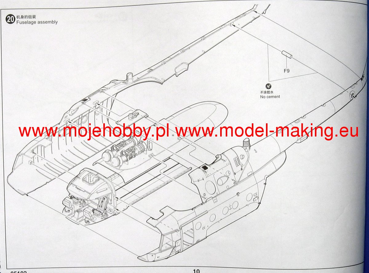 Описание М&-8 (В-8, изделие 80, по кодификации НАТО: Hip Бедро) советский/российский многоцелевой вертолёт, разработанный ОКБ М. Л. Миля в начале 1960-х годов. Самый массовый двухдвигательный вертолёт в мире (в общей сложности построено более 12 тыс. экземпляров всех модификаций); входит в список самых массовых вертолётов в истории авиации. М&-8МТ модификация с двигателями ТВ3-117 от вертолёта М&-14 с дополнительной газотурбинной установкой АИ-9В и пылезащитным устройством на входе в воздухозаборники, хвостовой винт был перенесён на левый борт. Для борьбы с ракетами типа земля-воздух имеются системы рассеивания горячих газов двигателей, отстрела ложных тепловых целей и генерации импульсных ИК-сигналов. В 19791988 гг. вертолёт М&-8МТ принимал участие в военном конфликте в Афганистане. Диаметр несущего винта: 608,5 мм, общая длина: 721 мм Всего деталей 263 шт. Фототравление Всего литников 9шт