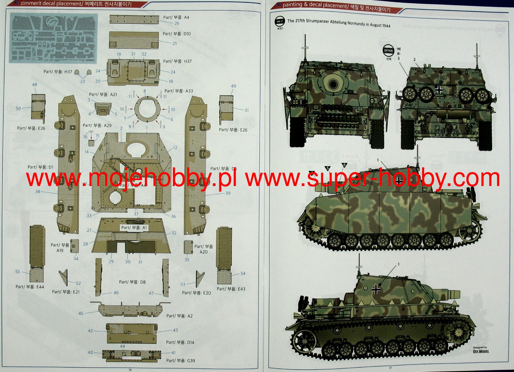 Описание Декаль - циммерит входит в комплект. Sturmpanzer IV средняя по массе немецкая самоходно-артиллерийская установка (САУ) класса штурмовых орудий времён Второй мировой войны на базе среднего танка Panzer IV. Использовалась в сражениях под Курском, в Анцио, Нормандии, и помогала при подавлении восстания в Варшаве. Серийно выпускалась с апреля 1943 года, до капитуляции Германии было выпущено 302 экземпляра. Они были распределены по четырём отдельным батальонам штурмовых танков. Официальное немецкое название Sturmpanzer IV (Штурмпанцер IV). По ведомственному рубрикатору министерства вооружений нацистской Германии самоходка обозначалась как Sd.Kfz. 166. Встречается название Sturmpanzer 43, где цифры означают начало выпуска машины, 1943 год. Немецкие солдаты между собой называли машину просто Штупа (StuPa) сокращение от официального Sturmpanzer. Но более известно прозвище Brummbär (с нем. ворчун, транслитерируется как Бруммбэр), данное разведкой союзников, которое не использовалось самими немцами. В советских документах того времени эта САУ обозначалась как Медведь.