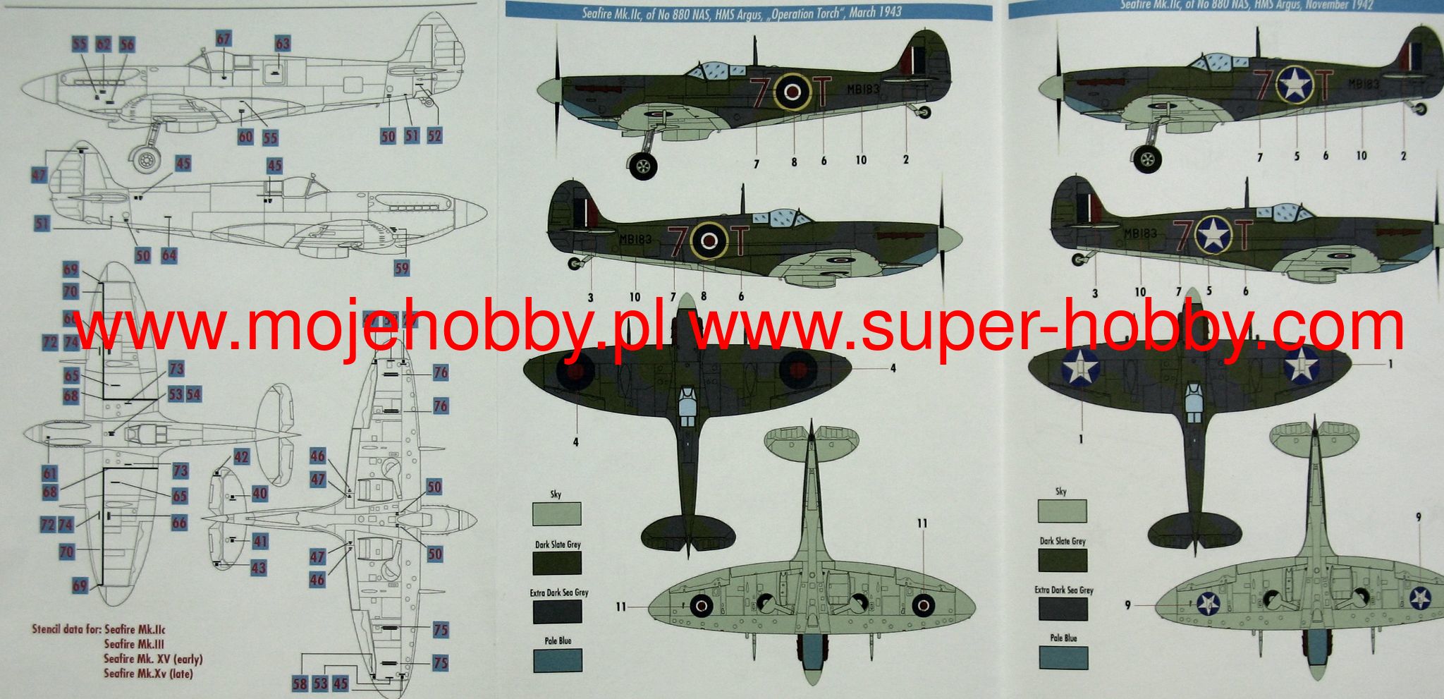 Supermarine Seafire британский бортовой истребитель времен Второй мировой и послевоенной войны с цельнометаллическим низкорасположенным крылом. Привод предусмотрен - в LF Mk. III - однодвигательный Роллс-Ройс Мерлин 55М мощностью 1585 л.с. Полет прототипа состоялся в январе 1942 года, а вскоре после этого началось серийное производство, в результате которого было создано около 2650 самолетов этого типа. Бортовое вооружение у Mk. III состоял из двух 20-мм пушек Hispano и четырех 7,7-мм пулеметов. Самолет Supermarine Seafire представлял собой доработанную версию знаменитого истребителя Spitfire, но адаптированную для работы с авианосцев. Изменения в основном касались снижения веса самолета, использования складных крыльев и тормозного гака, а также усиления всей конструкции. Силовой агрегат изменился, хотя это были по-прежнему двигатели Rolls-Royce. В ходе серийного производства было создано множество доработок этого самолета, например: Mk. IB (вариант истребителя, одна из первых серийных серий, представлявшая собой перестроенный Spitfire Mk. V b), Mk. II C (охотничий вариант с усиленной конструкцией и модифицированным бортовым вооружением), Mk. III (версия с двигателем Merlin 55). В 1946 году Mk. XV с двигателем Griffon VI. Боевое крещение самолеты Supermarine Seafire получили в ходе операции Факел в ноябре 1942 года. Они также воевали во время высадки на Сицилии в 1943 году и в Нормандии в 1944 году. Они также служили на Дальнем Востоке в 1944-1945 годах. Они также принимали ограниченное участие в начальной фазе Корейской войны (1950-1953 гг.). Самолеты этого типа также служили в вооруженных силах Франции, Ирландии и Канады.