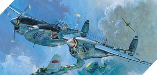 Описание P-38 Lightning американский тяжёлый двухмоторный истребитель. P-38 разработан в соответствии с концепцией тяжелого высотного истребителя, выдвинутой армейской авиацией США в 1937 году. Использовался как истребитель дальнего сопровождения, штурмовик и разведывательный самолёт. Широко применялся ВВС США во время Второй мировой войны, особенно на Тихоокеанском театре военных действий и Китайско-Бирманско-Индийском театре военных действий. На Юго-западном тихоокеанском театре P-38 оставался почти до самого конца войны (до тех пор, пока в армию не поступило значительное количество P-51D Mustang) основным истребителем дальнего действия сухопутных войск США. На P-38 летали два самых результативных лётчика-истребителя в истории американской военной авиации Ричард Айра Бонг и Томас Макгуайр, а также известный французский писатель Антуан де Сент-Экзюпери (погиб в полёте над Средиземным морем летом 1944, предположительно был сбит немецким Bf.109). На счету P-38 также дерзкая операция по ликвидации японского адмирала Ямамото 18 апреля 1943 года над одним из тихоокеанских островов 18 Лайтнингов перехватили и сбили бомбардировщик G4M, на котором летел Ямамото, а также истребители Зеро прикрытия, адмирал погиб.
