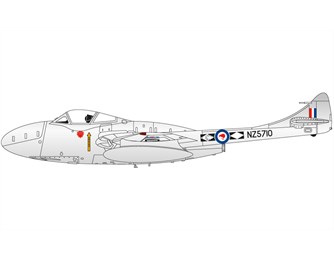 De Havilland DH.100 Vampire британский реактивный истребитель. Это был второй реактивный самолет (после Gloster Meteor) на вооружении RAF. Полет прототипа состоялся в 1943 г., но до частей первой линии машина дошла только в апреле 1945 г., а боевой готовности достигла в 1946 г. Столь существенные отличия объяснялись тем, что DH.100 изначально планировался только как экспериментальный самолет, который не предназначался для серийного производства. Однако все было иначе, и всего по лицензии было произведено около 3300 самолетов для Королевских ВВС, а также для более чем 30 других стран. Эта машина прослужила в Королевских ВВС до 1960-х годов, а с конца 1950-х к самолетам DH.100 относились только как к учебно-тренировочным машинам. Vampire стал первым истребителем Королевских ВВС, превысившим скорость 800 км/ч в горизонтальном полете, а также первым реактивным самолетом в истории Королевского флота, совершившим посадку на авианосец. DH.100 также был первым самолетом (с промежуточными посадками), пересекшим Атлантику. Было создано более десятка модификаций этого самолета, из которых более широко выпускалась версия FB.5. Технические данные (версия FB.6): Максимальная скорость: 882 км/ч, скорость набора высоты: 24,4 м/с, максимальный потолок 13045 м, максимальная дальность: 1960 км, вооружение: стационарное - 4 Hispano Mk.V кал.20мм, подвесной до 296 кг неуправляемых ракет и до 450 кг бомб.