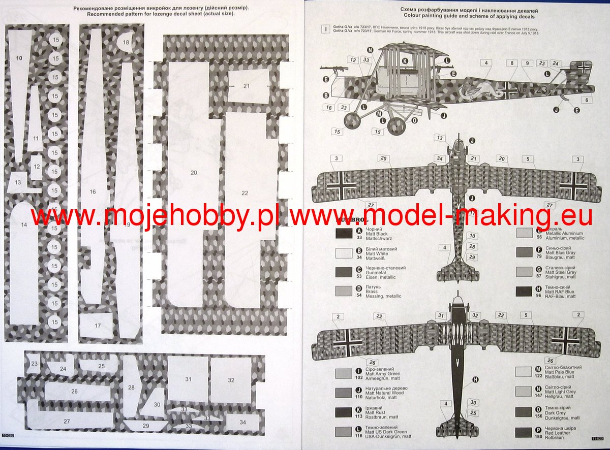 After the outbreak of the war, the German Gothär Waggonfabrik factory switched from the production of railway carriages to the construction of large aircraft. In 1915, their first structure was tested - the GI bomber. 18 aircraft were produced. The Gotha plane is a twin-engine, biplane, three-person (or two-person) bomber with a pusher propeller (except for the GI). The hull is covered, depending on the model, with plywood and linen, or only with plywood. The bombardier cabin at the front was equipped with a bomb ejector and a Parabellum rifle on the turntable. At the back, the gunner's cockpit also has a Parabellum rifle on a turntable (both cal. 7.92 mm), in the middle - the pilot's cabin. Double-girder panels, covered with linen. Fuel tanks capacity - 550 l (additionally a 70 l drop tank, into which the pilot pumped gasoline with a manual pump). Bomb load up to 500 kg, which, depending on the size, were attached under the fuselage or placed inside the bombardier's cabin. In 1917, production of the G.IV. About 230 copies of this type of aircraft were produced. Unlike previous models, the G.IV had ailerons on both lobes and the entire fuselage was covered with plywood. Later (from August 1917) of the war, there were also variants G.Va and G.Vb, differing from the G.IV with a slightly higher load capacity. In addition, the special structure of the hull at the rear gunner position allowed for the mounting of upward and downward firing MGs, which eliminated the blind spot. The GV "a" and "b" versions were powered by two Mercedes D.IVa engines with a capacity of 260KM each. About 200 of these models were produced. From September 1917 to the end of hostilities, Gotha planes made 70 night attacks on Great Britain, during which 60 machines were lost. Most of them (36) crashed on landing! G.IV planes were also used in the Balkans and in Italy (Austro-Hungarian aviation). After the war, the Polish aviation served the captured ones: four G.IV and one G.III. Technical data: length: 12.42 m, wingspan: 23.7 m, height: 4.5 m, maximum speed: 140 km / h, maximum range: 840 km, maximum ceiling 6500 m, armament: fixed 2-3 MG14 machine guns cal. 7.92mm, suspended - up to 550 kg bombs.