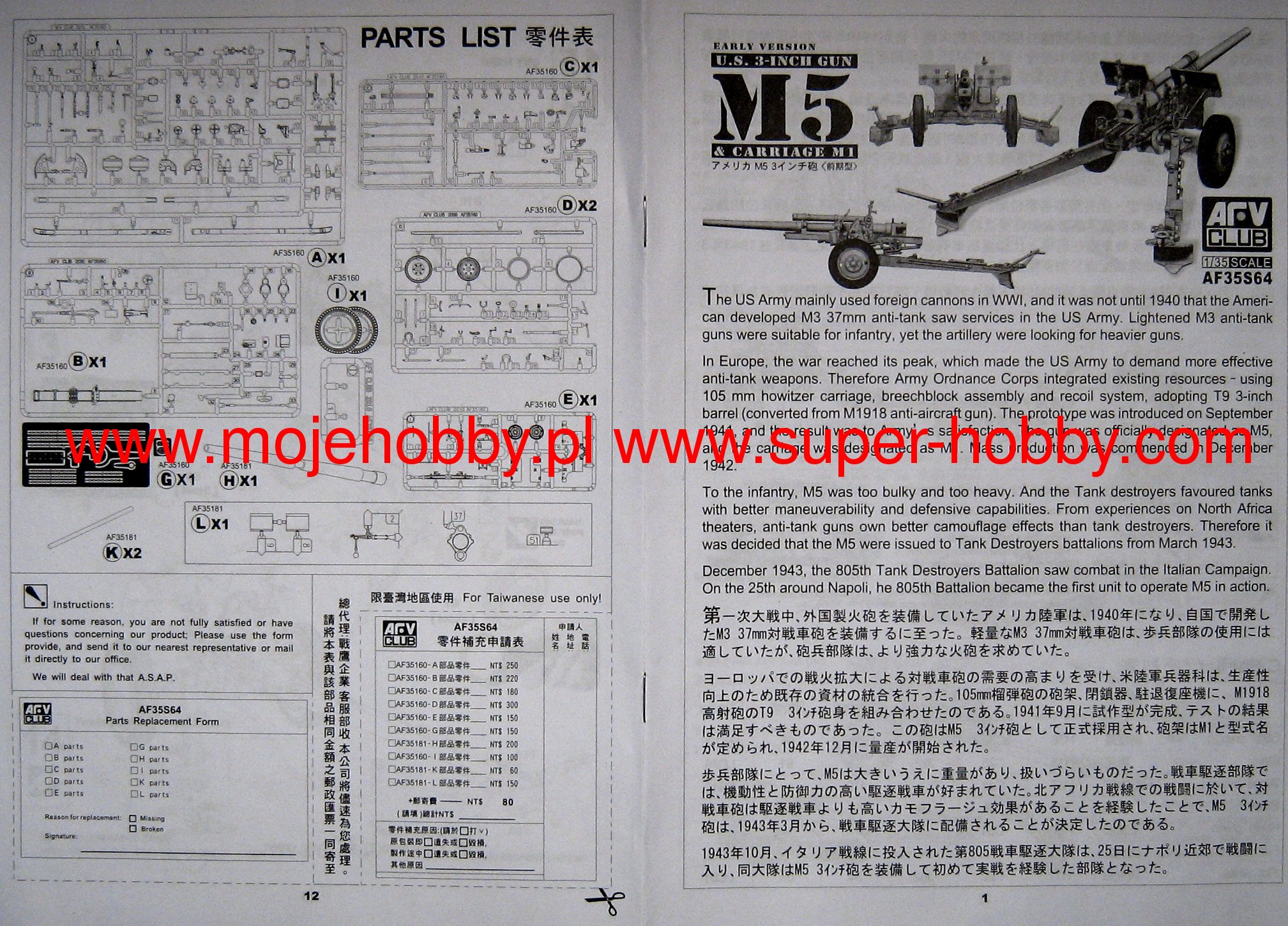 US 3 INCH GUN M5 ON CARRIAGE M1 afv-club 1/35