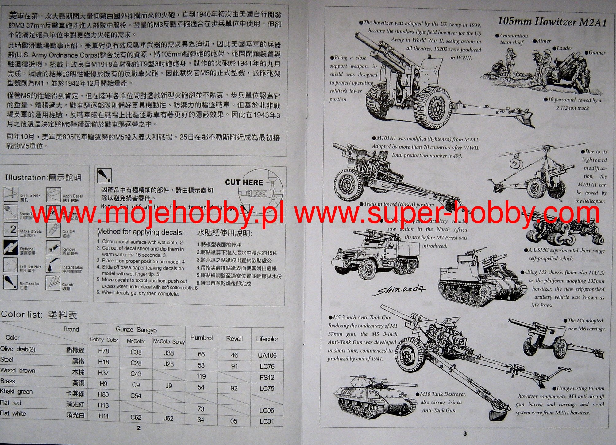 The M5 is an American 76.2 mm (3 inch) anti-tank gun from the Second World War. This weapon was produced in the years 1942-1944 and a total of about 2,500 copies were made. The length of the cannon with the barrel was 7.1 m, with a weight of 2,210 kg. The rate of fire - with well-trained staff - was up to 12 rounds / minute. The maximum range was 14.7 kilometers. The M5 cannon was designed to replace the 37mm M3 cannon, which quickly turned out to be a weapon inconsistent with the realities of the battlefield at that time. When choosing the caliber for the new anti-tank gun, it was decided to use the caliber of 76.2 mm. At the same time, in order to shorten the work on the new weapon as much as possible, it was decided to use a lot of elements from other guns - the T9 anti-aircraft gun and the 105 mm M2 howitzer. The M5 cannons were used by tank destroyer battalions during the campaign in Italy (1943-1945) and during the fighting in North-Western Europe (1944-1945). It is worth noting that the relatively large losses suffered by troops equipped with M5 cannons during the operation in the Ardennes (December 1944-January 1945) meant that this weapon was systematically withdrawn from the line from the beginning of 1945 in favor of mobile tank destroyers, e.g. M -10 or M-18.
