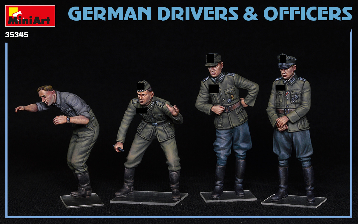 Kit contains 4 unassembling figures of German Drivers and Officers