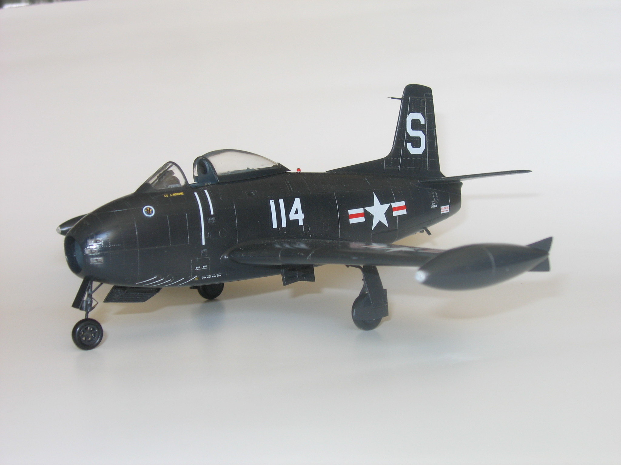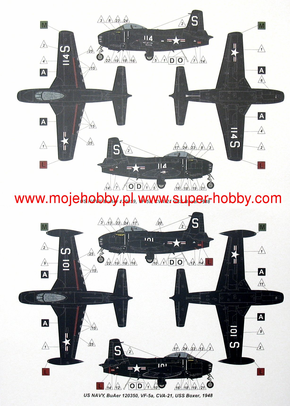 The North American FJ-1 Fury was an American-made onboard fighter from the Cold War period. The drive was provided by a single engine in the basic version Allison J-35-A-2 turbojet. The first flight of this machine took place in 1946. The machine entered the US Navy line in 1947 and was withdrawn from it six years later - in 1953. In total, including prototypes, 31 examples of this aircraft were built. The deck armament consisted of six 12.7 mm Browning M2 machine guns. The first work on the FJ-1 Fury began at the end of 1944, when the US Navy placed an order to develop a new jet-powered in-flight fighter - it was to be the first such aircraft in its history! The North American company used many components from the P-51D Mustang (for example, the cab fairing) in the new machine to reduce the time of research and development. It was also decided to use straight wings, not oblique ones, in order to put the machine into production as soon as possible. However, the high pace of work led to the fact that the FJ-1 Fury was not very successful - it was characterized by good performance at that time, but it was emergency and required a lot of run-up, which is difficult to find on board an aircraft carrier. These shortcomings meant that it quickly began to be used as a base for the creation of a new aircraft, designated FJ-2 Fury.