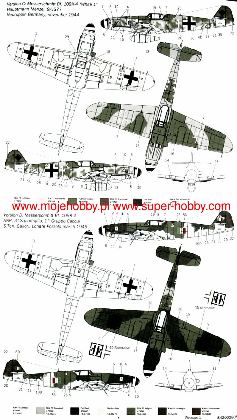SUPER DECALS SHEET FOR 4 VERSIONS - COLOR INSTRUCTIONS SHEET