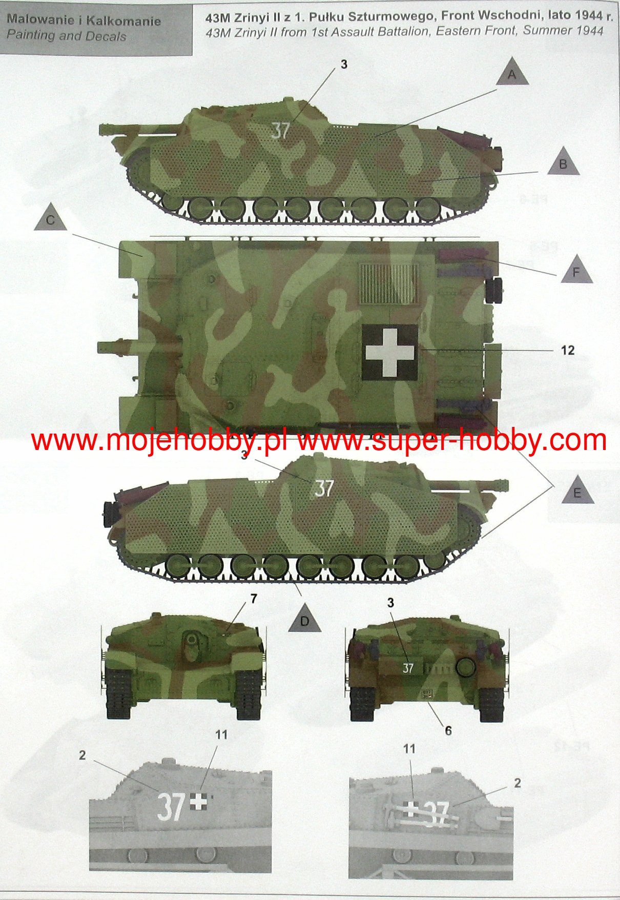 Zrinyi II 40/43. The M was a Hungarian self-propelled howitzer from the Second World War. The first prototypes of the vehicle were built in 1942, and serial production continued in the period 1943-1944, ending with the production of about 60-70 vehicles. The Zrinyi II was powered by a single engine Manfred Weiss V-8 H with 260 HP . It was armed with a howitzer MAVAG 40/43 M caliber 105 mm and 1 machine gun MAVAG 40/43 M cal. 8 mm. The Hungarian army, after the experience of fighting on the Eastern Front in 1941-1942, realized the need to implement a self-propelled howitzer for production. In order to save time needed for design and analytical works, a slightly modified chassis of the 40. M Turan I tank and the proven 105 mm MAVAG howitzer were used for this task. The tests of the new weapons of the Hungarian army were successful and in 1943 the Zrinyi II entered mass production. The Zrinyi II turned out to be a successful weapon - it was not very emergency, it had a low silhouette which facilitated concealment, and the 105 mm howitzer was sufficient to provide the necessary support to its own infantry. The Zrinya II vehicle entered the line in September 1943, and it was baptized into combat during the fighting in Ukraine in 1944. Later, vehicles of this type fought primarily in Slovakia and Hungary in the Balaton region and in the Battle of Budapest. A certain amount of these weapons was captured by the Red Army, which it used until 1945.