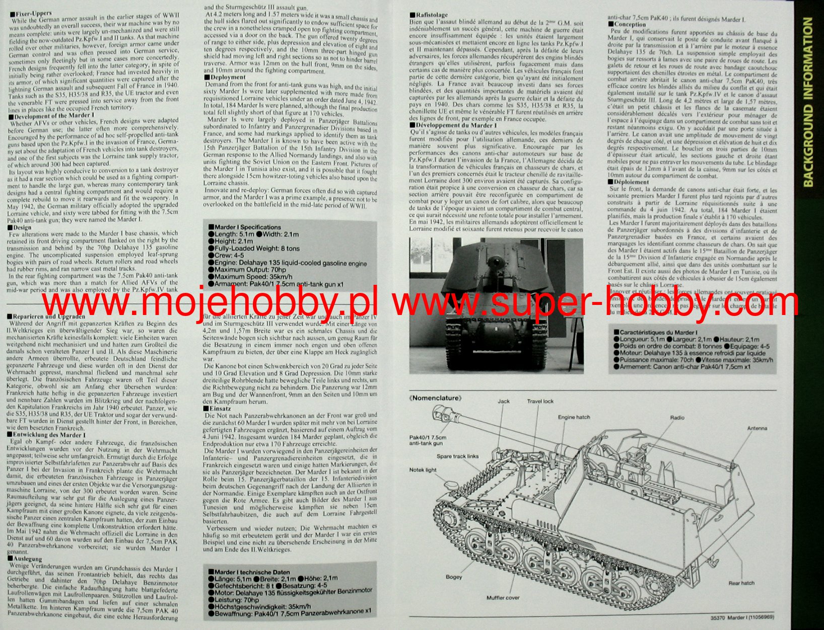 ОПИСАНИЕ ТОВАРА Комплект пластиковых деталей для сборки масштабной модели немецкой САУ Jagdpanzer Marder I Sd. Kfz. 135 в масштабе 1:35. Для сборки модели необходим специальный модельный клей. В комплект включены две миниатюры экипажа. Для придания модели завершенного вида рекомендуется покраска. Внимание! Клей и краски в комплект не входят!