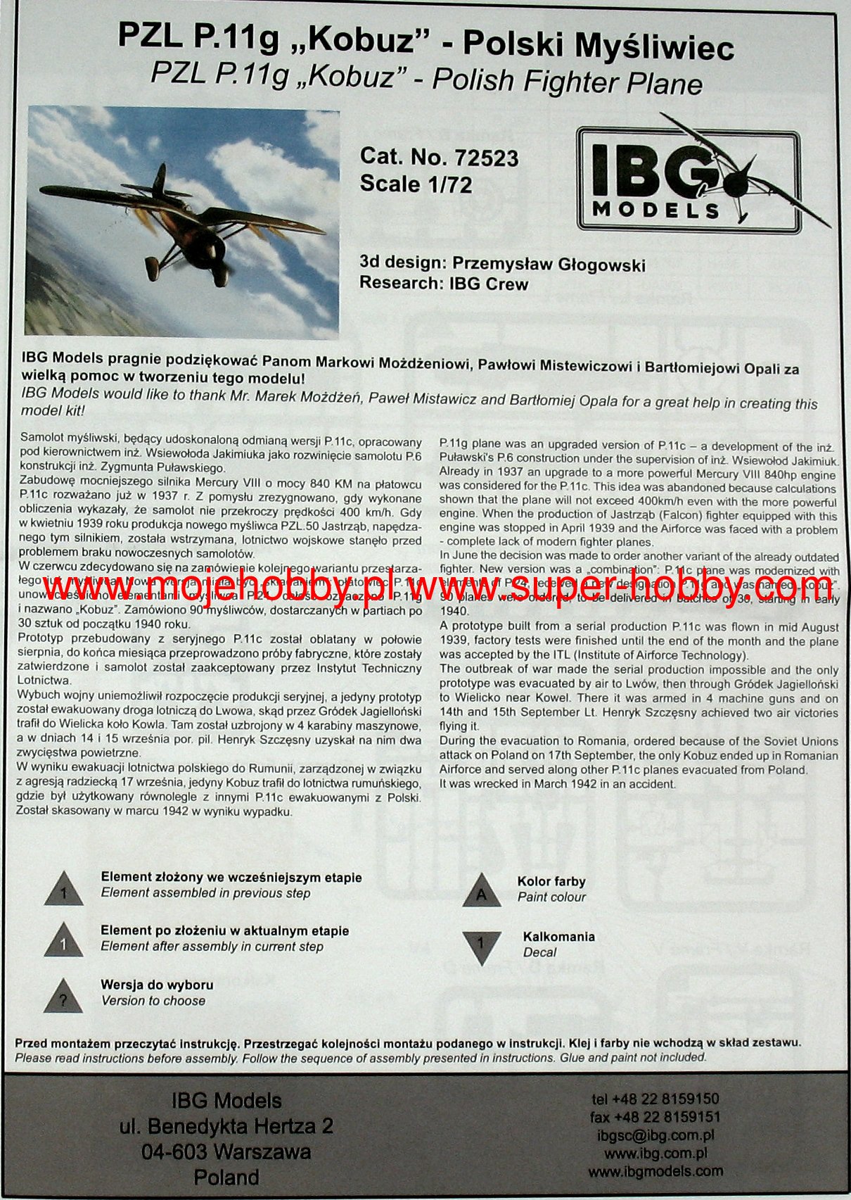 The PZL P.11a (the so-called eleven) is a Polish, single-engine fighter plane with a metal structure with Puławski wings, a classic tail and a fixed landing gear. The flight of the prototype took place in 1931, but serial production continued in 1937-1939. The first serial version is the PZL P.11a powered by the Bristol Mercury IV S2 engine with a power of 550 HP. However, it was treated as a transitional version and only 50 were ordered. The most famous version of the "eleven" - PZL P.11c - appeared in the summer. It had an improved fuselage, wings and a vertical stabilizer. It all improved the aerodynamics of the plane. The drive unit has not changed. The interest in the construction was expressed by, among others, Romania, where 95 units of the licensed PZL P.11 were manufactured at the IAR plants. At the outbreak of the war, all versions of the P.11 were much slower than their German opponents, but at the same time had greater maneuverability, high rate of climb and a less emergency engine than German planes. They had many victories over the enemy during the September campaign, mainly as part of the Pursuit Brigade. Technical data (version P.11c): length: 7.55m, wingspan: 10.72m, height: 2.85m, maximum speed: 367km / h, rate of climb: 14.5m / s, maximum ceiling: 8000m, range maximum: 550 km, armament: fixed - 2 machine guns wz.33 cal.7.92 mm.