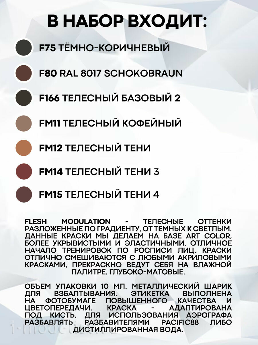 НАБОР КРАСОК НАБОР ТЁМНЫХ ТЕЛЕСНЫХ ОТТЕНКОВ (BLACK FLESH COLORS) продается в 1 магазинах. Выберите подходящий Вам интернет-магазин и перейдите по ссылке «В магазин».